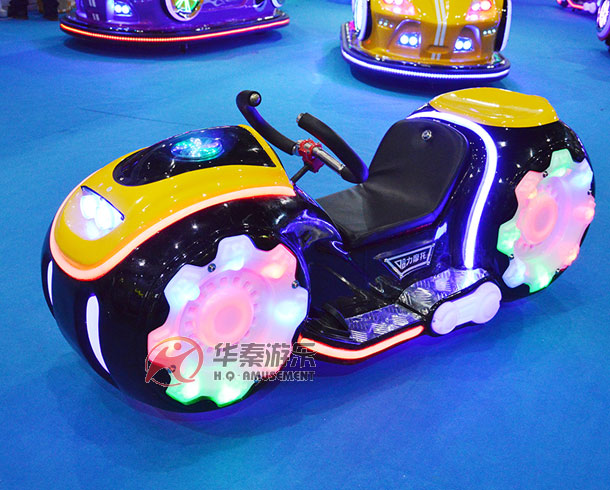 遥控器或者刷卡启动,有3个速度档位切换,按控制面板调节音乐脚踩油门启动机台,前进挡、后退档、方向盘控制方向。 | ||