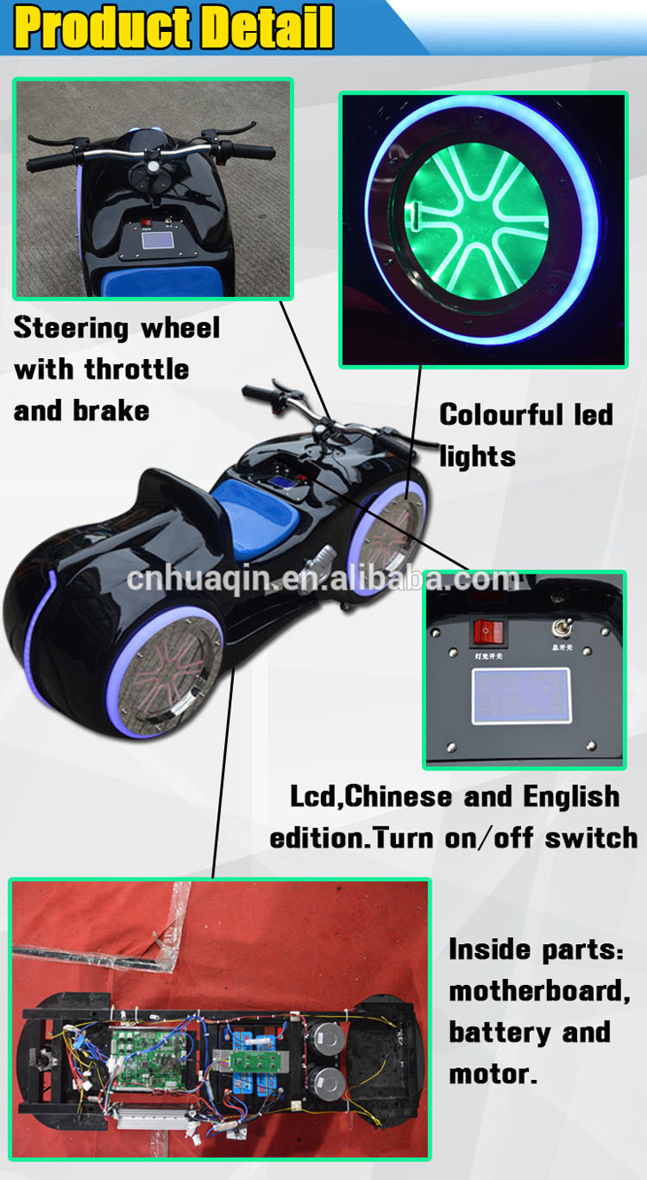 3. Sit in the machine,speed up by twisting the right steering wheel.You can choose fast/normal/slow speed.